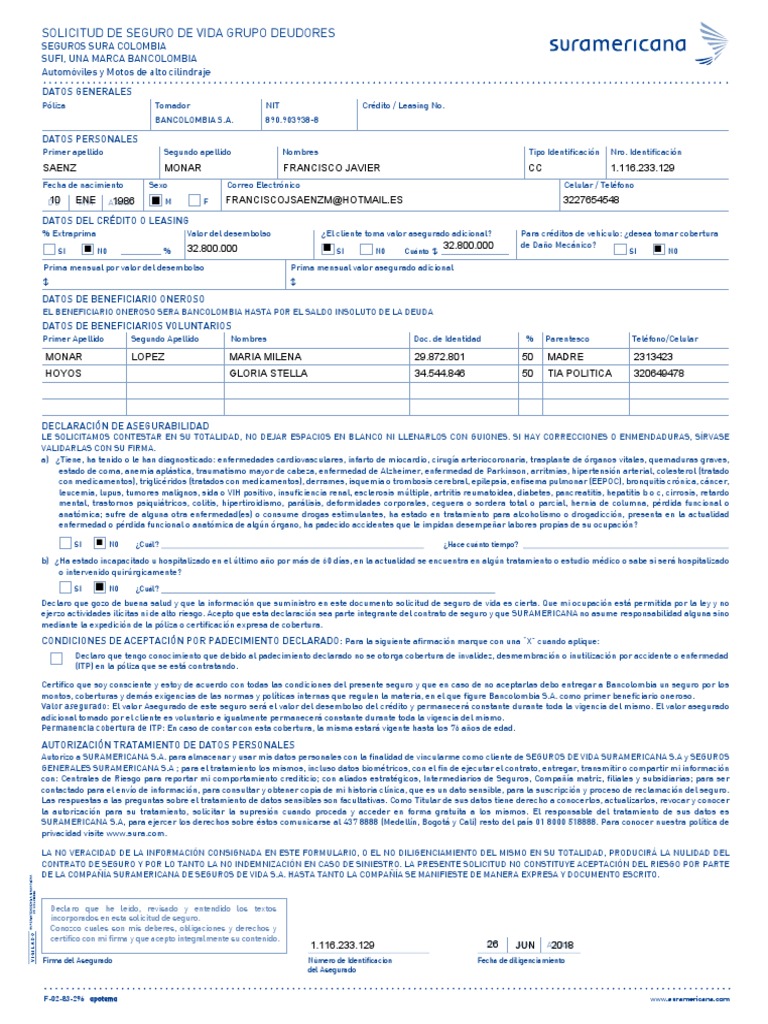 Formato De Seguro De Vida 1 Pdf Poliza De Seguros Seguro