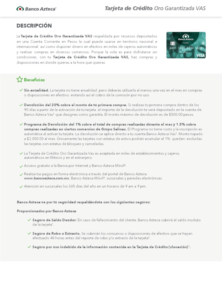 Folleto Informativo Tdc Oro Garantizada Vas Poliza De Seguros Bancos